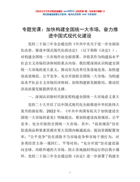 / 专题党课:加快构建全国统一大市场,奋力推进中国式现代化建设