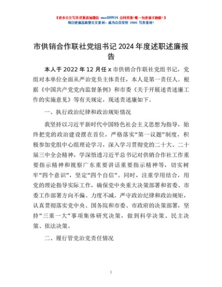 / 市供销合作联社党组书记2024年度述职述廉报告