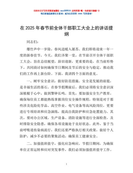 / 在2025年春节前全体干部职工大会上的讲话提纲