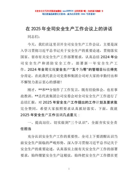 / 在2025年全司安全生产工作会议上的讲话