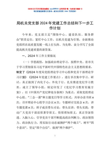 / 局机关党支部2024年党建工作总结和下一步工作计划