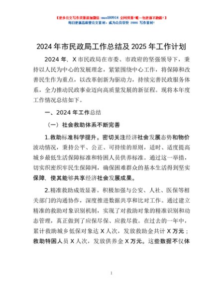 / 2024年市民政局工作总结及2025年工作计划