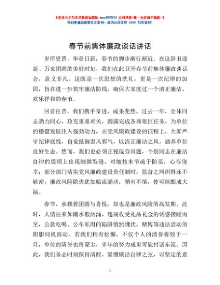 / 春节前集体廉政谈话讲话