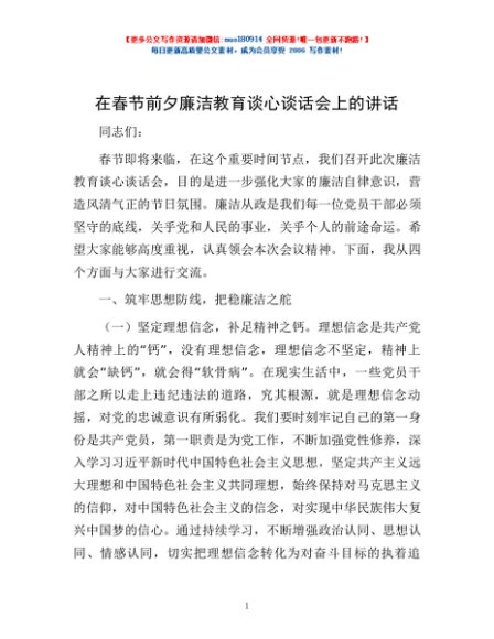 / 在春节前夕廉洁教育谈心谈话会上的讲话