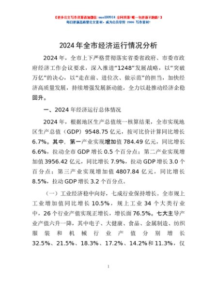 / 2024年全市经济运行情况分析