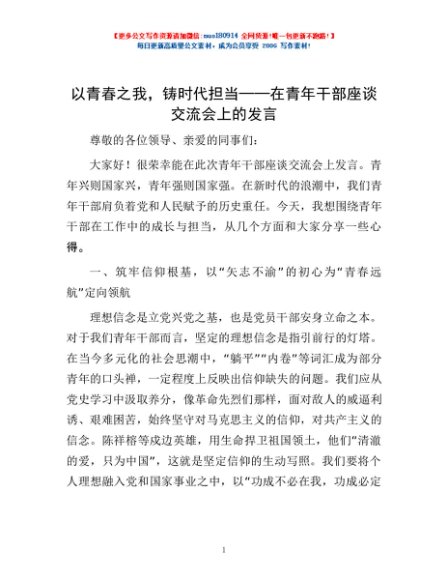 / 以青春之我,铸时代担当——在青年干部座谈交流会上的发言