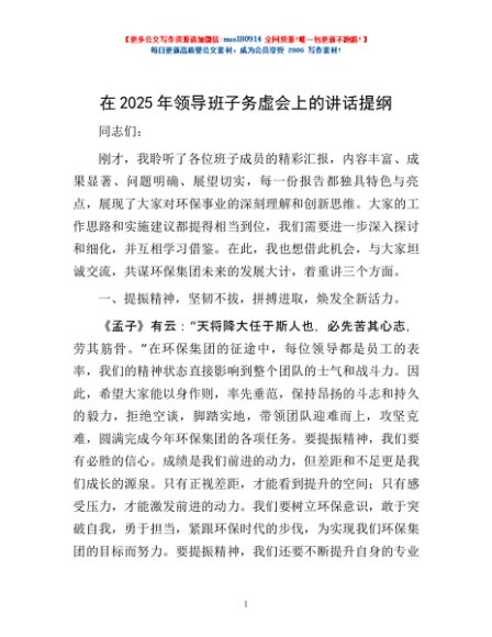 / 在2025年领导班子务虚会上的讲话提纲