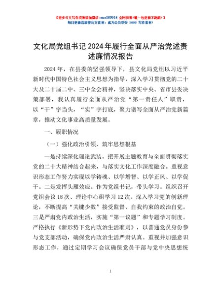/ 文化局党组书记2024年履行全面从严治党述责述廉情况报告