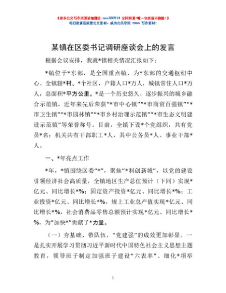 / 某镇在区委书记调研座谈会上的发言