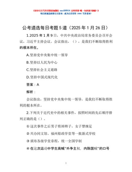 / 公考遴选每日考题5道(2025年1月26日)
