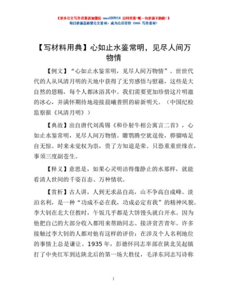 【写材料用典】心如止水鉴常明,见尽人间万物情