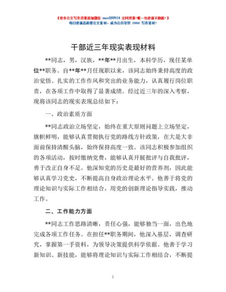 / 干部近三年现实表现材料