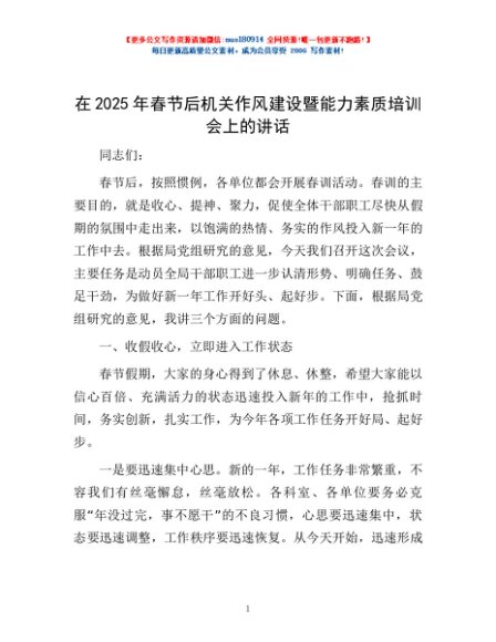 / 在2025年春节后机关作风建设暨能力素质培训会上的讲话
