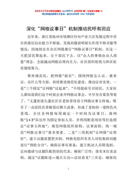 / 深化“网格议事日”机制推动民呼有回应