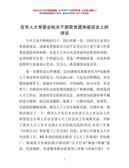 / 在市人大常委会机关干部荣誉退休座谈会上的讲话
