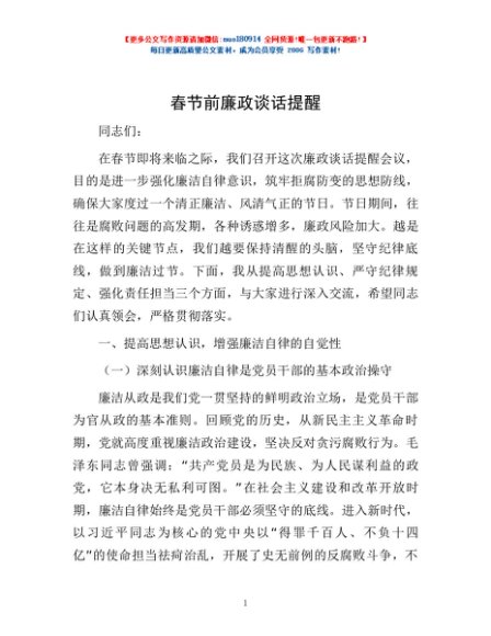 春节前廉政谈话提醒