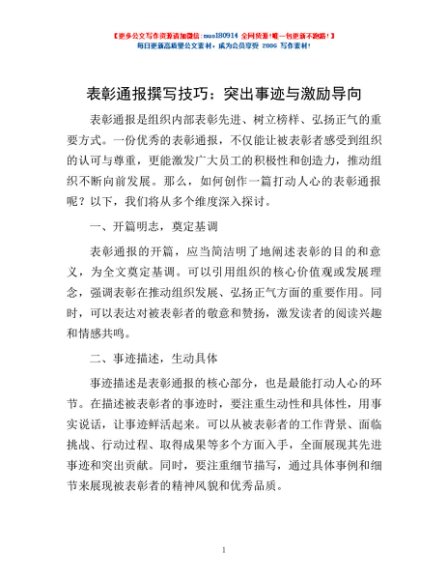/ 表彰通报撰写技巧:突出事迹与激励导向