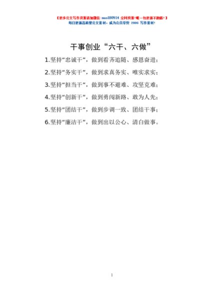 / 干事创业“六干、六做”