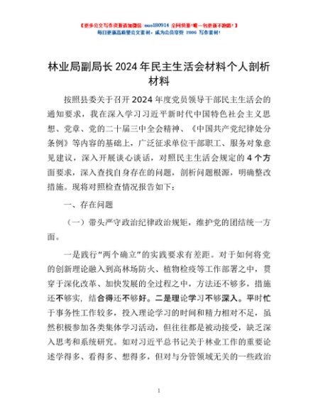 / 林业局副局长2024年民主生活会材料个人剖析材料