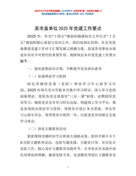 / 某市直单位2025年党建工作要点