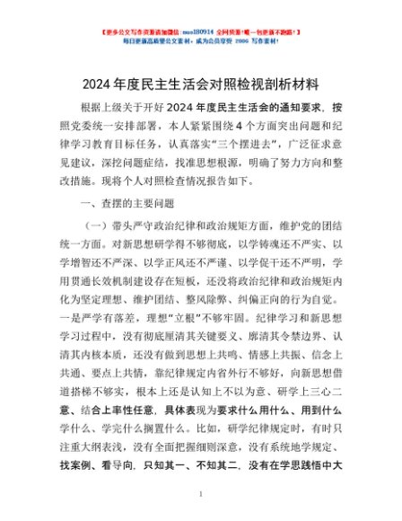 / 2024年度民主生活会对照检视剖析材料