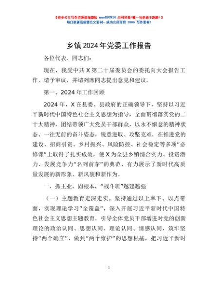 / 乡镇2024年党委工作报告