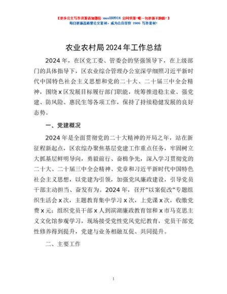 / 农业农村局2024年工作总结
