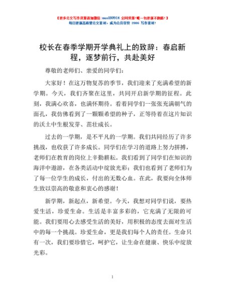 / 校长在春季学期开学典礼上的致辞:春启新程,逐梦前行,共赴美好