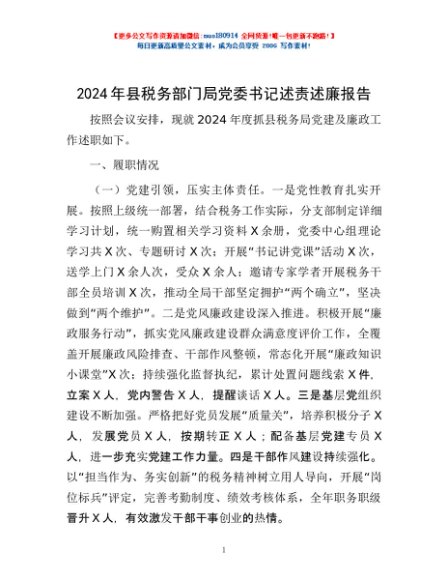 / 2024 年县税务部门局党委书记述责述廉报告