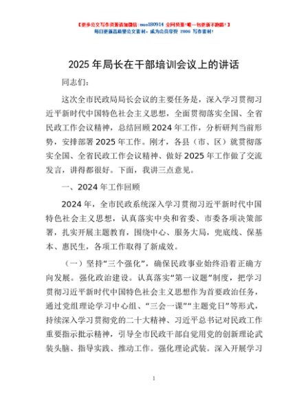 / 2025年局长在干部培训会议上的讲话