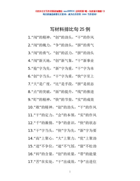 / 写材料排比句25例
