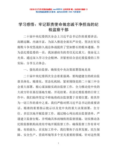 / 学习感悟:牢记职责使命 做忠诚干净担当的纪检监察干部