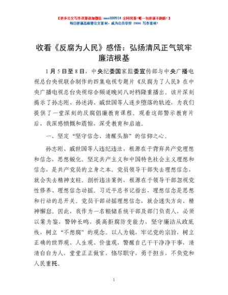 / 收看《反腐为人民》感悟:弘扬清风正气筑牢廉洁根基