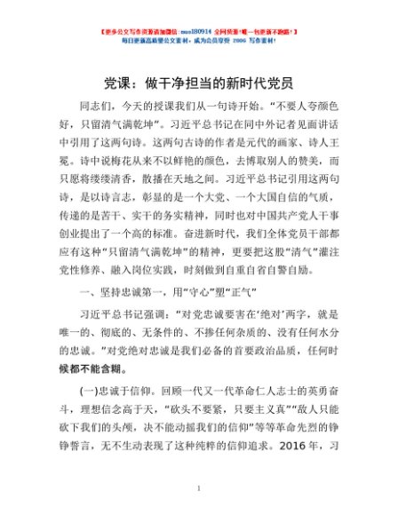 党课:做干净担当的新时代党员