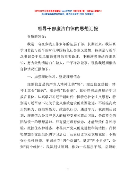 / 领导干部廉洁自律的思想汇报