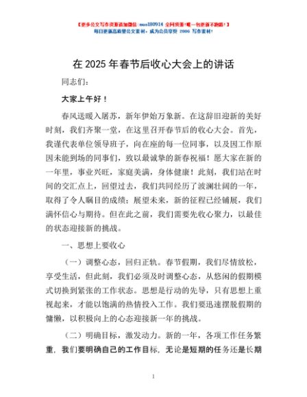 / 在2025年春节后收心大会上的讲话
