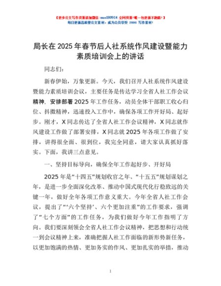 / 局长在2025年春节后人社系统作风建设暨能力素质培训会上的讲话