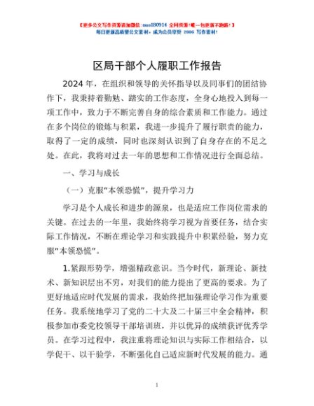 / 区局干部个人履职工作报告