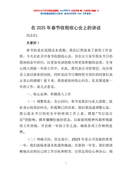 / 在2025年春节收假收心会上的讲话