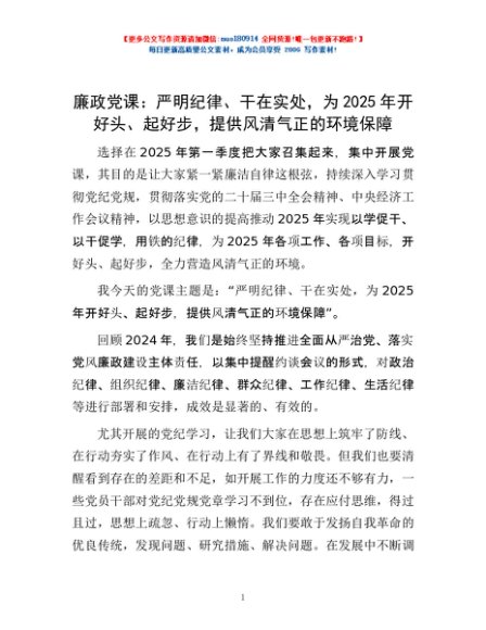 / 廉政党课:严明纪律、干在实处,为2025年开好头、起好步,提供风清气正的环境保障