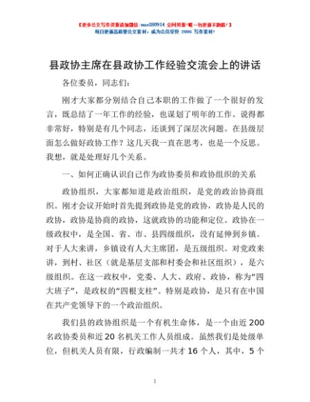 / 县政协主席在县政协工作经验交流会上的讲话