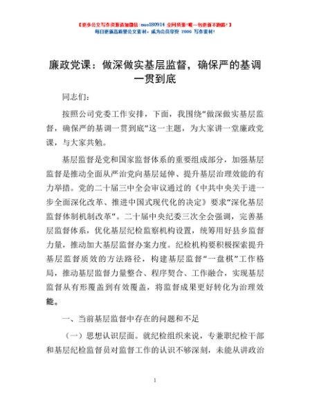 / 廉政党课:做深做实基层监督,确保严的基调一贯到底