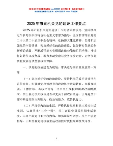 / 2025年市直机关党的建设工作要点
