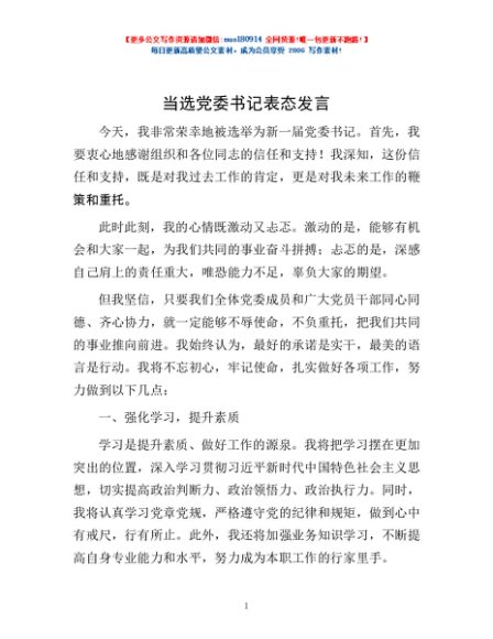 / 当选党委书记表态发言