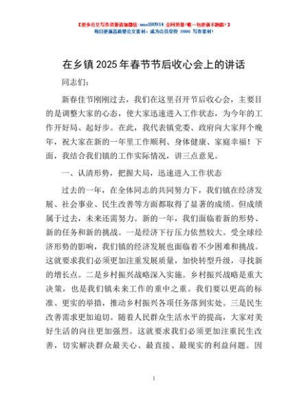/ 在乡镇2025年春节节后收心会上的讲话