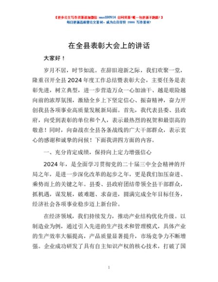 / 在全县表彰大会上的讲话