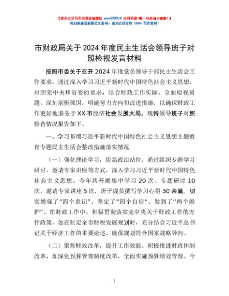 / 市财政局关于2024年度民主生活会领导班子对照检视发言材料