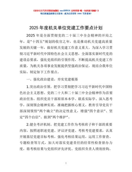 / 2025年度机关单位党建工作要点计划