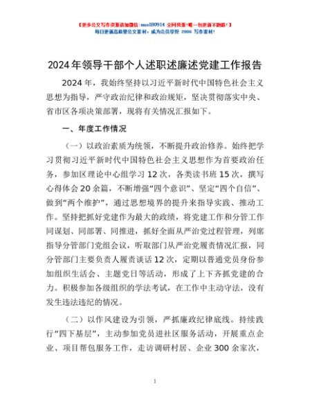 / 2024年领导干部个人述职述廉述党建工作报告