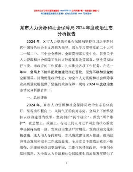 / 某市人力资源和社会保障局2024年度政治生态分析报告